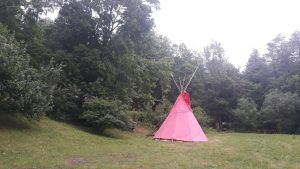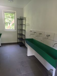 Sociální zařízení je ve vlastní vedlejší budově. Umývárna, sprchy a WC.