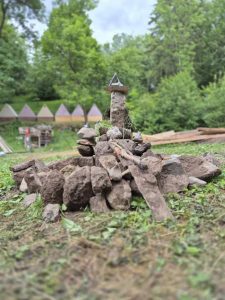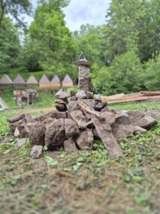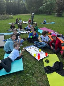 V těsné blízkosti je k dispozici louka, potok a travnatá terasa, ideální na venkovní hry a zábavu.